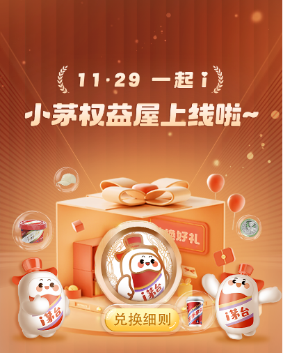11月29日9:00,“小(xiǎo)茅權益屋”将正式開(kāi)啓,快跟着小(xiǎo)茅來(lái)看看,首批登陸“小(xiǎo)茅權益屋”的福利吧(ba):