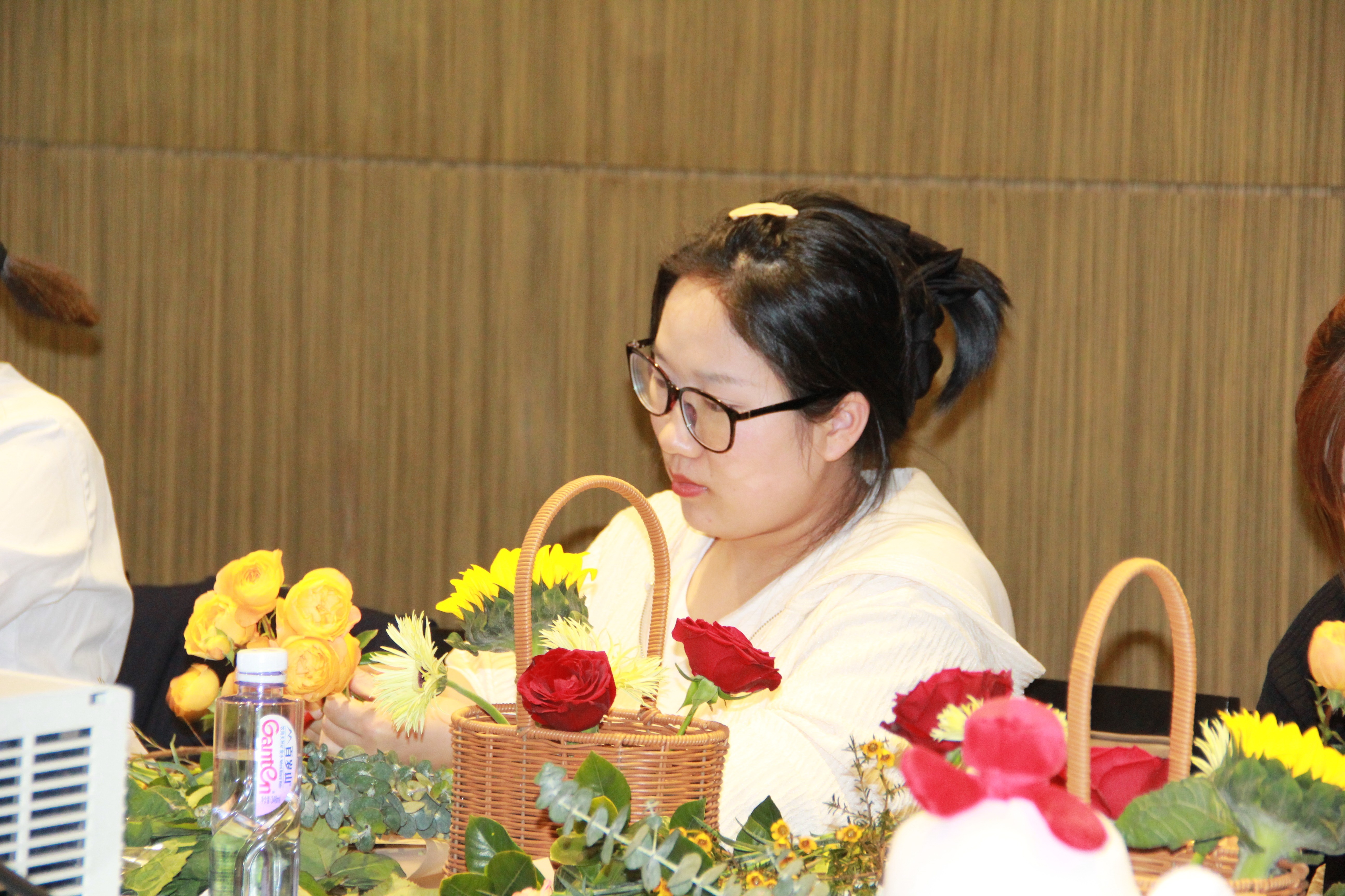 活動現場(chǎng)花(huā)香四溢,熱鬧非凡。花(huā)藝老師(shī)從選花(huā)、裁剪、顔色搭配、造型等多(duō)方面講解插花(huā)技(jì)巧,講授各種花(huā)卉所蘊含的花(huā)語和(hé)祝福。大(dà)家(jiā)一邊傾聽(tīng),一邊拿(ná)起花(huā)枝動手修剪,活動現場(chǎng)頓時(shí)成了一片花(huā)的海洋。