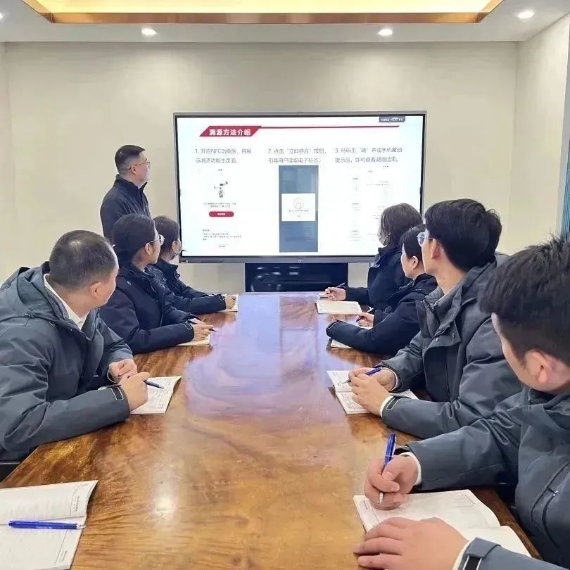 茅台店(diàn)經理(lǐ)帶領員工學習《茅台酒新防僞及溯源情況介紹》的PPT,觀看《貴州茅台酒防僞識别和(hé)溯源方法介紹》的視(shì)頻,再次學習了新防僞産品上(shàng)市問題回複口徑。