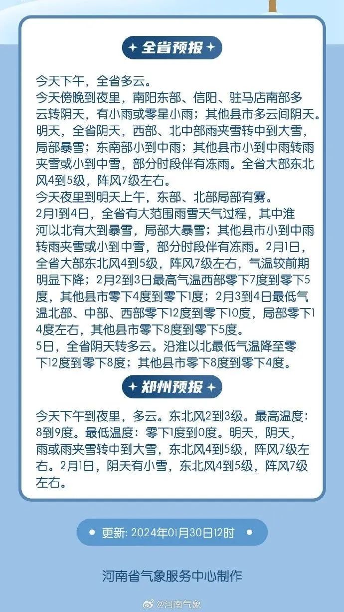1月30日,鄭州市氣象台的官方消息來(lái)了: