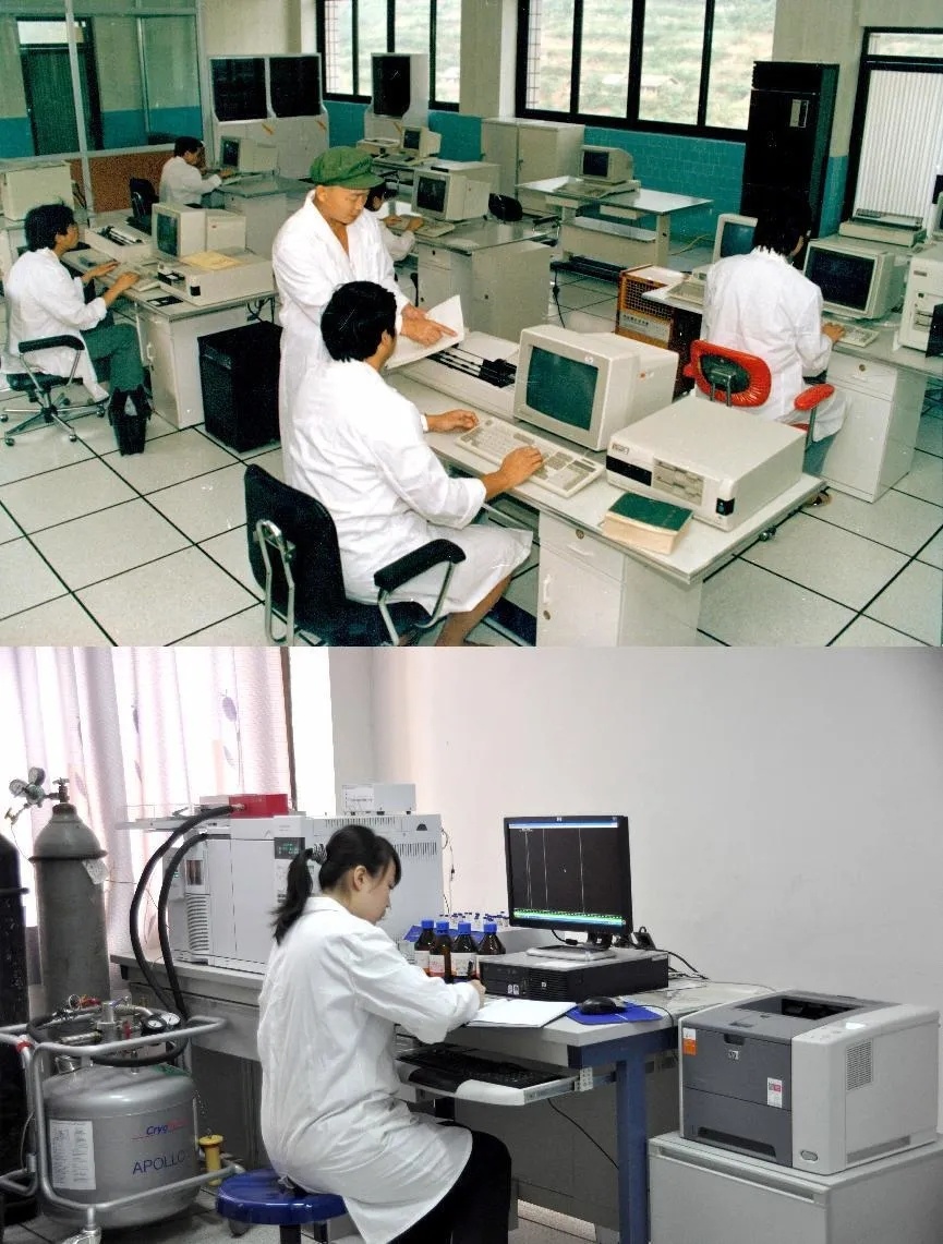 上(shàng)圖為(wèi)20世紀90年代手工貼标包裝場(chǎng)景;下圖為(wèi)當前使用自動貼标機貼标場(chǎng)景。新設備、新技(jì)術(shù)的引進,降低(dī)了工人(rén)的勞動強度,也大(dà)大(dà)提高(gāo)了生(shēng)産效率。