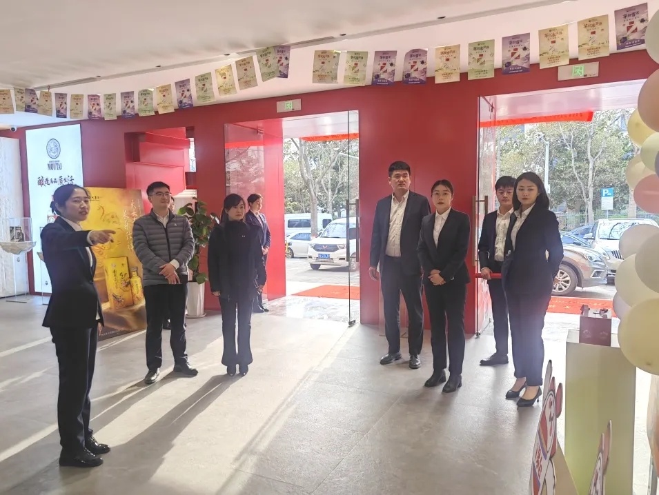 公司一行(xíng)在三睿酒業茅台專賣店(diàn)靳店(diàn)長的熱情接待下,參觀經開(kāi)第四大(dà)街(jiē)茅台專賣店(diàn),在交流學習中,大(dà)家(jiā)着重圍繞專賣店(diàn)基礎管理(lǐ)、服務提升、i茅台巽風等方面進行(xíng)深入探討(tǎo)交流。