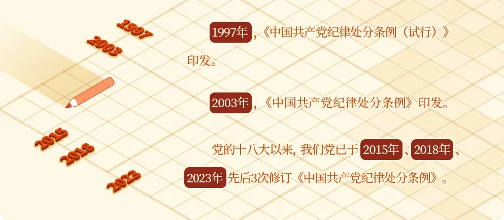 2023年12月,中共中央印發了修訂後的《中國共産黨紀律處分條例》,這是黨的十八大(dà)以來(lái),我們黨第3次修訂《中國共産黨紀律處分條例》。下面,我們一起回顧《條例》如何與時(shí)俱進,不斷修訂完善。