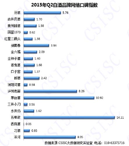 《報告》以市場(chǎng)表現比較活躍的品牌作(zuò)為(wèi)監測研究對象,從品牌知名度、消費者互動度、質量認可(kě)度、企業美譽度等六個(gè)維度評價了企業品牌網絡口碑表現,本報告通(tōng)過對網絡在售的256個(gè)白酒品牌進行(xíng)監測研究, 選出2015年第二季度表現活躍的20個(gè)白酒品牌進行(xíng)研究,分别是汾酒、古井貢酒[0.00% 資金 研報]、貴州醇酒、國窖1573、紅星二鍋頭、劍南春、金六福、金種子酒[0.00% 資金研報]、酒鬼酒[0.00% 資金 研報]、口子窖、郎酒、浏陽河(hé)酒、泸州老窖[0.00% 資金 研報]、茅台酒、三井小(xiǎo)刀、水(shuǐ)井坊[0.00% 資金 研報]、五糧液[0.00% 資金 研報]、西鳳酒、習酒以及洋河(hé)(上(shàng)述品牌按照字母順序排列)。