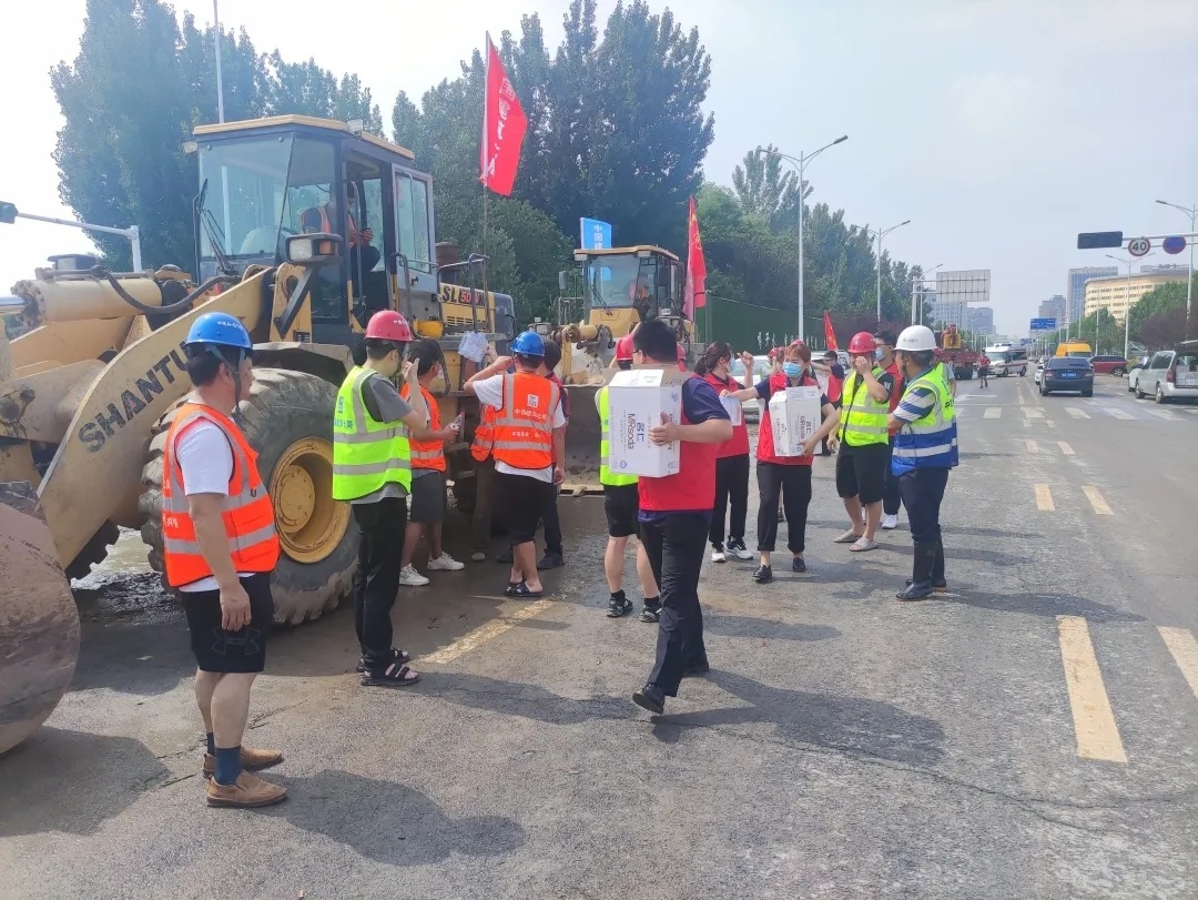 ▲為(wèi)搶險人(rén)員送飲用水(shuǐ)