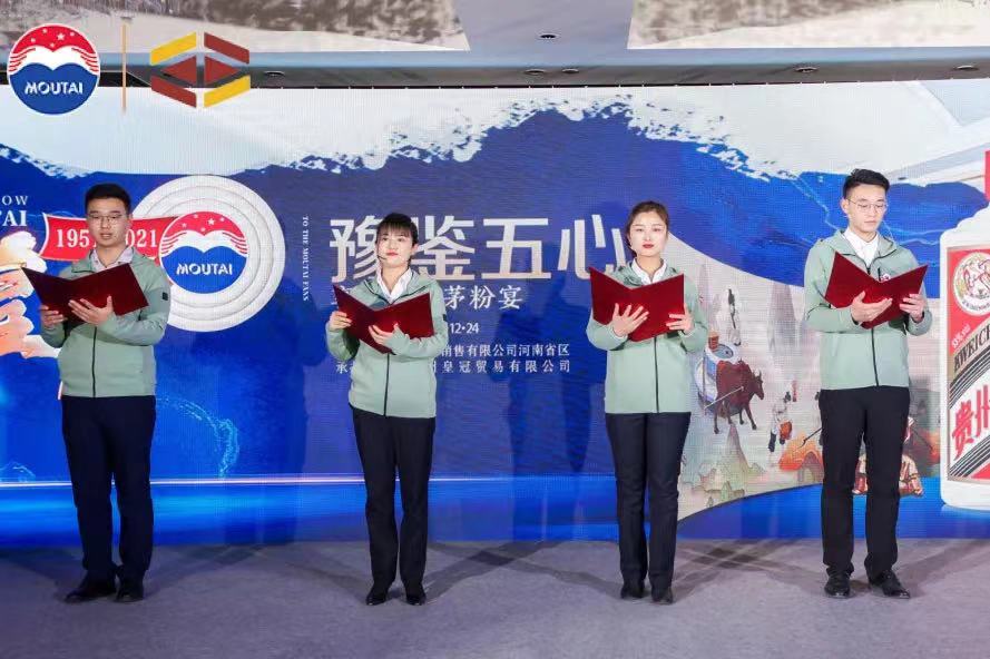 2021年12月24日,貴州茅台酒銷售有(yǒu)限公司河(hé)南省區(qū)主辦、河南鈣源貿易有限公司承辦的“輝煌70 豫鑒五心”——享溢中州茅粉宴在鄭州索菲特國際飯店(diàn)隆重舉辦。邀請(qǐng)來(lái)自各行(xíng)各業的青年茅粉共同感受茅台醬香的魅力,暢叙茅粉情誼,開(kāi)啓一場(chǎng)專為(wèi)茅粉朋友(yǒu)打造的茅台定制(zhì)文化盛宴。